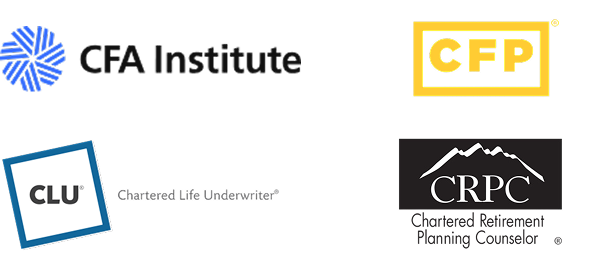 *Different members of our team hold different training and credentials. Logos shown are intended to illustrate the breadth of experience represented by team members but does not mean that every employee holds every designation. See the individual’s ADV 2B brochure supplement for details on that person’s education and background and a description of any applicable third-party credentials.